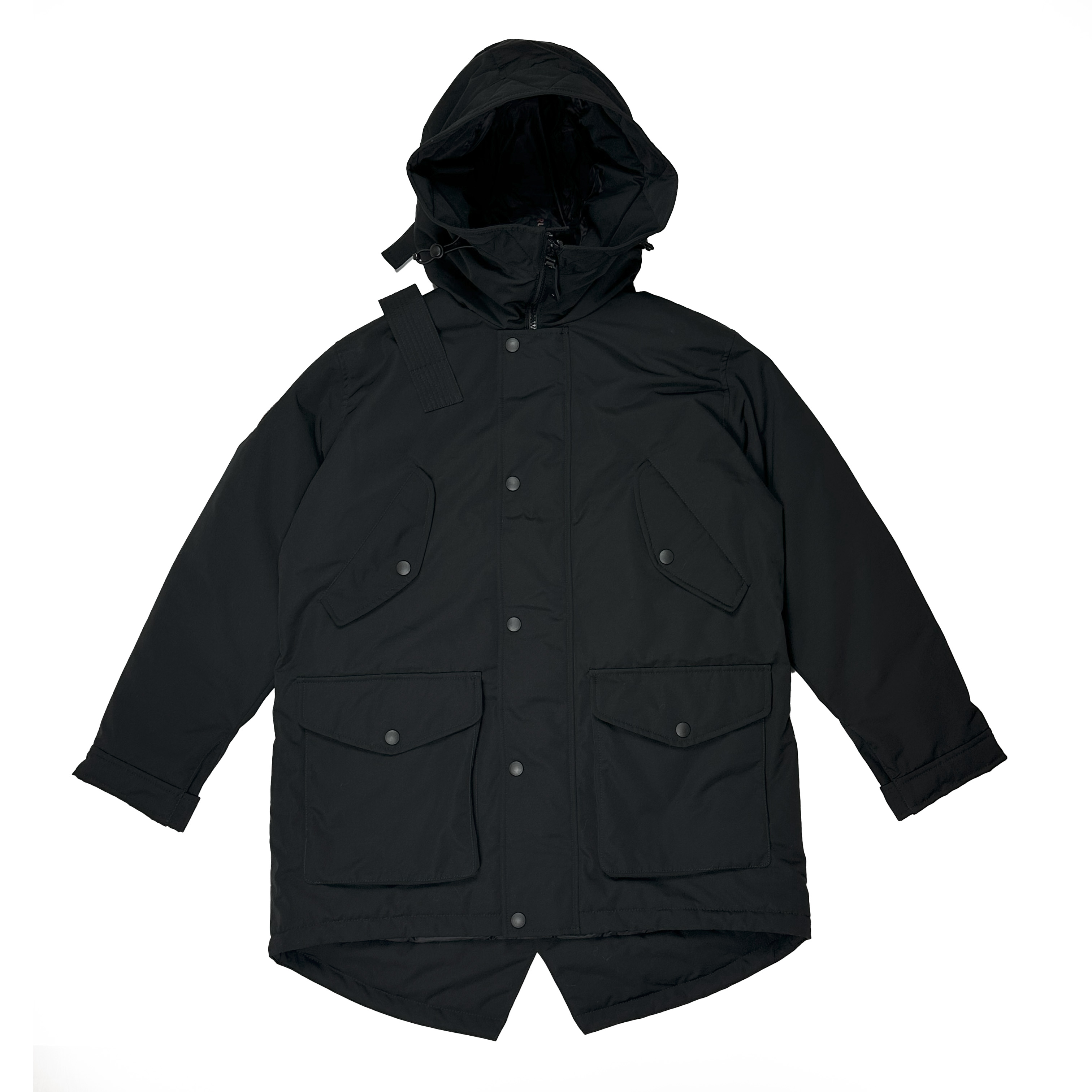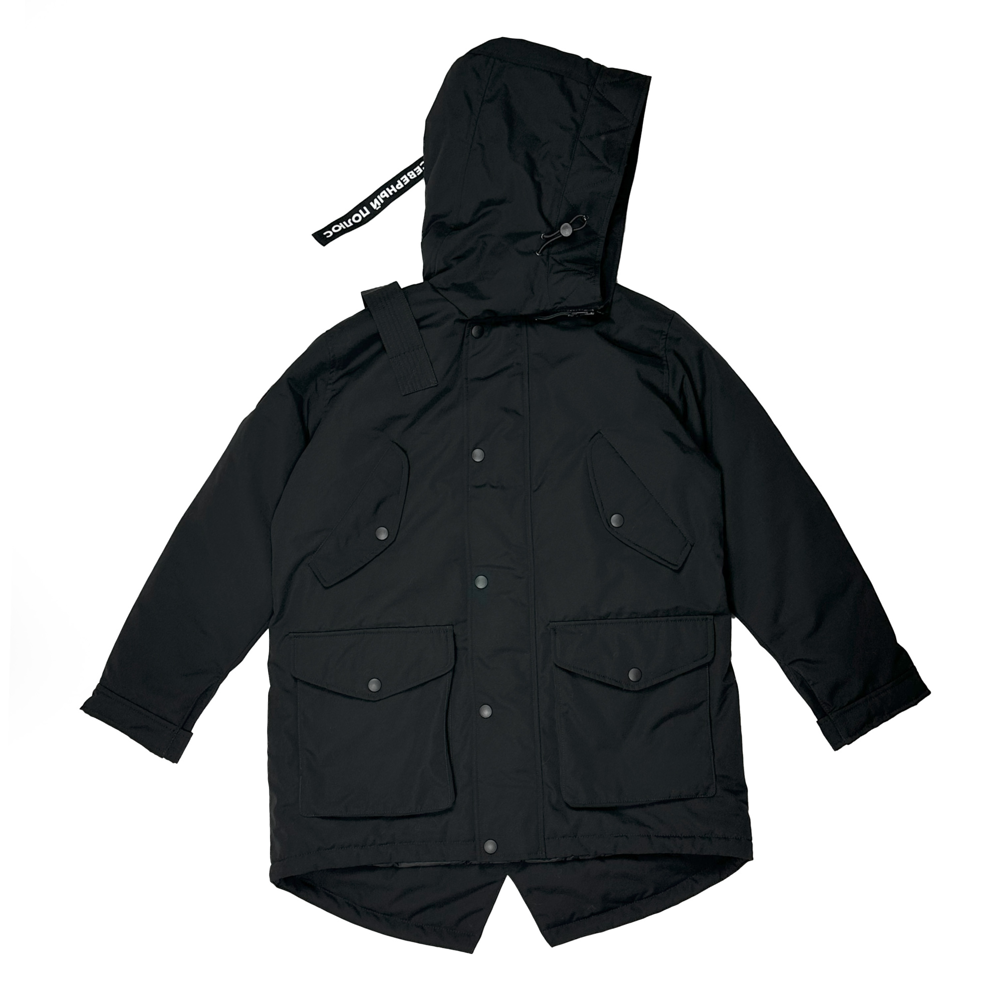 - Удобный капюшон формы «труба», оснащенный утяжкой для самостоятельной регулировки посадки.