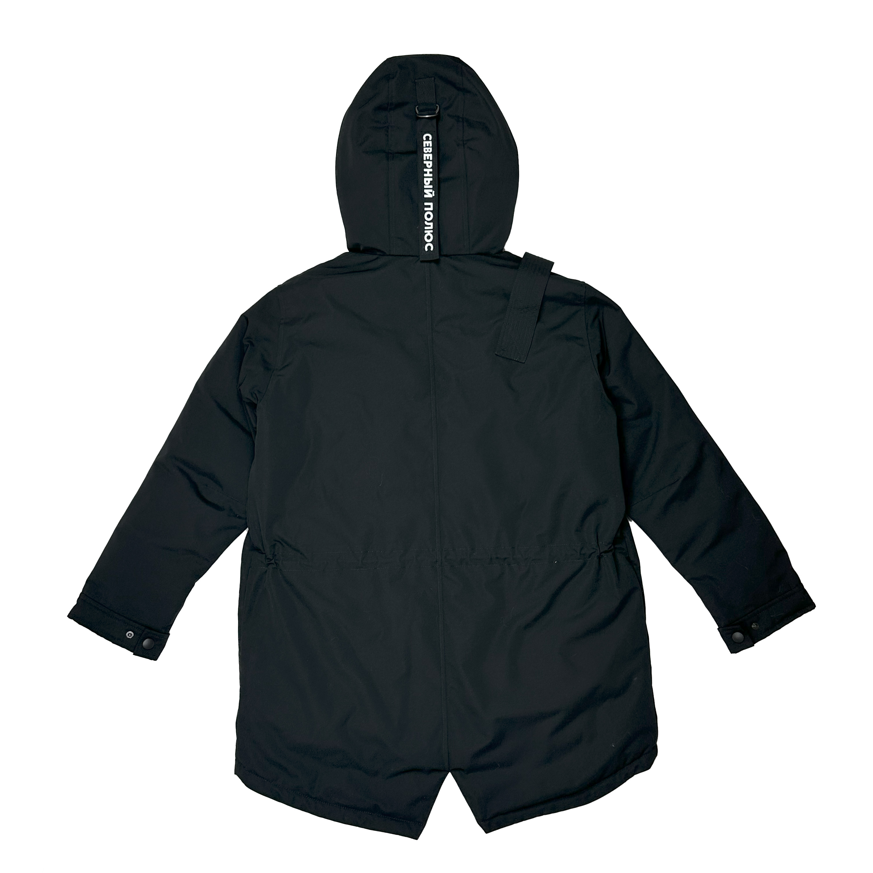 - Фирменный декор: съемный шеврон «Аrctic Explorer» на рукаве, погон на одном плече, повторяющий настоящие полярные погоны, нашивка «Северный полюс» на хлястике капюшона.